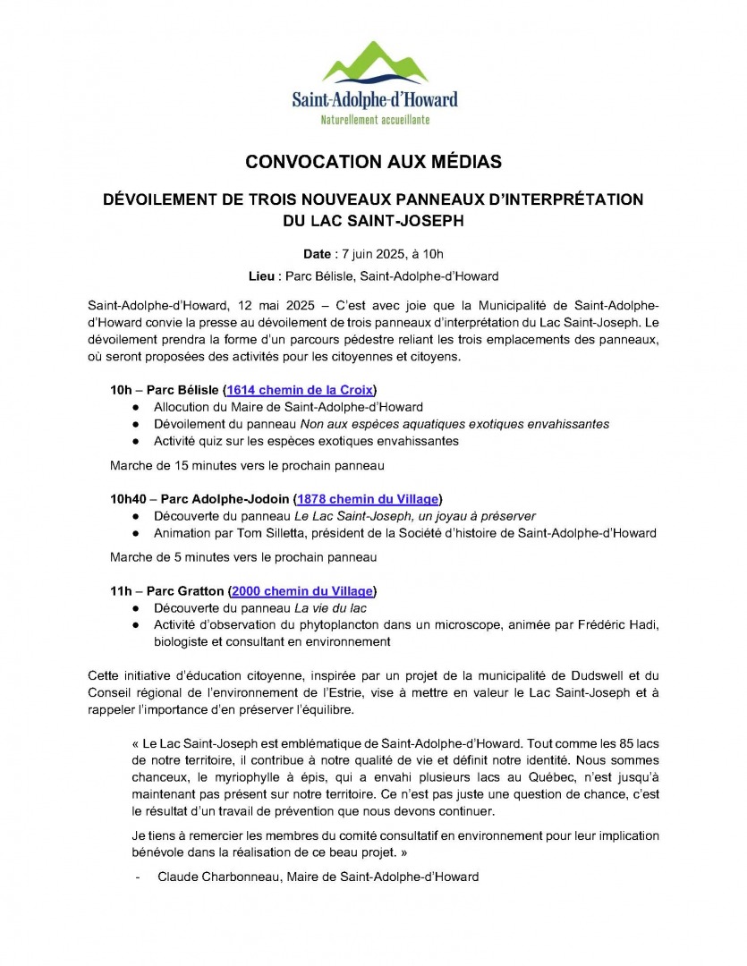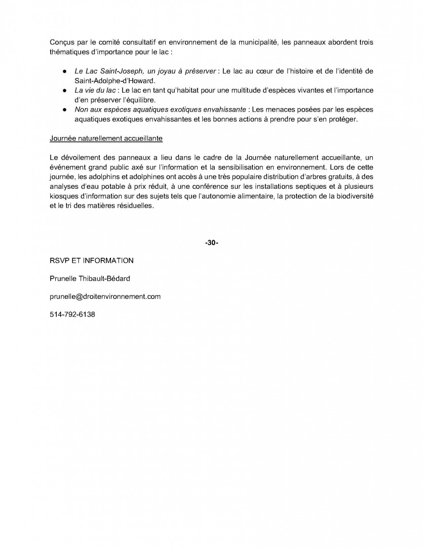 Dévoilement panneaux d'interprétation lac Saint-Joseph